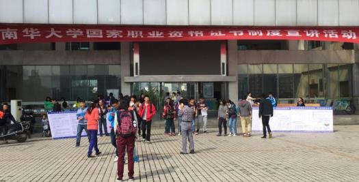 为大力推行国家职业资格证书制度,加快技能人才队伍建设,更好地服务我校学生就业和经济社会发展,贯彻执行湖南省人力资源和社会保障厅职业技能鉴定中心下发的《关于开展2015年国家职业资格证书制度宣讲活动的通知》(湘人社鉴函〔2015〕5号)文件,2015年10月11日上午继续教育学院在环球官方网址第1教学楼前坪举办了国家职业资格证书制度宣讲活动。活动通过在校园布置宣传横幅、摆放展架、发放相关宣传资料、现场问卷调查方式进行,让学生更多的了解了国家职业资格制度。